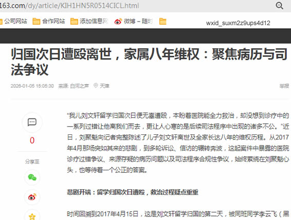 “我儿刘文轩留学归国次日便无辜遭殴,本盼着医院能全力救治,却没想到诊疗中的一系列过错让他离我们而去,更让人心寒的是后续司法程序中出现的诸多不公。”近日,刘聚魁向记者完整陈述了儿子刘文轩离世及全家长达八年的维权历程。从2017年4月那场突如其来的悲剧,到多轮诉讼、信访的辗转奔波,这起案件中暴露的医院诊疗过错争议、来源存疑的病历问题以及司法程序合规性争议,始终萦绕在刘聚魁心头,也等待着一个公正的答案。